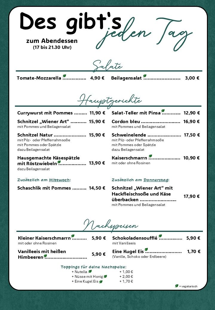 Abends steht unsere Karte für 'jeden Tag' für dich bereit.
